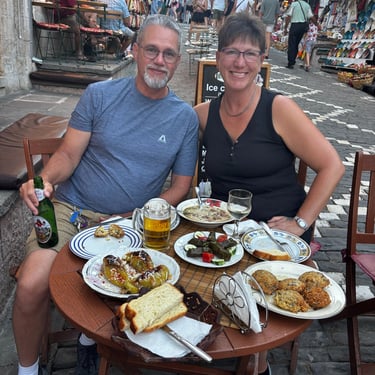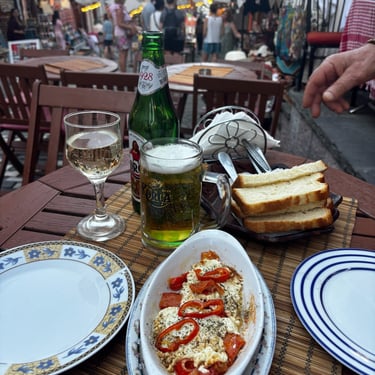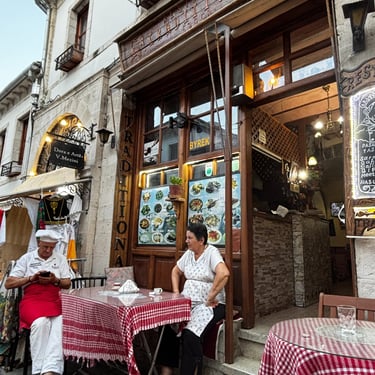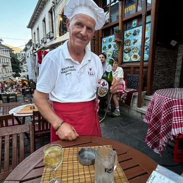 Gjirokastër has faced isolation many times in their ancient history. It's no wonder that Gjirokastër has beautiful sustaining food that is unique to its region. While we visited several restaurants in the old town, one stood out due to the personal connection created by the owners. Dinner at Restaurant Gjoca was not only delicious, but fun as Defrim sat down with us and engaged about his food while we were trying to decide. He sparkled with excitement over some of his favorite dishes and even posed for our camera while presenting the local beer. He and his wife, Bukra, were a delight to meet. In addition to the traditional wonders we trialed, Greg was highly pleased one evening to enjoy a pint of Guinness in an Irish bar located in Albania.
