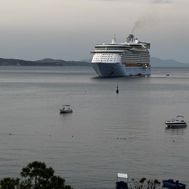 Cruise Ships: the bigger the ship, the more it stands out in the small Sarandë harbor. Some require tender boats to transfer passengers; others pull right up to the international docks.