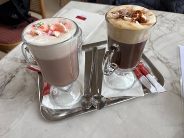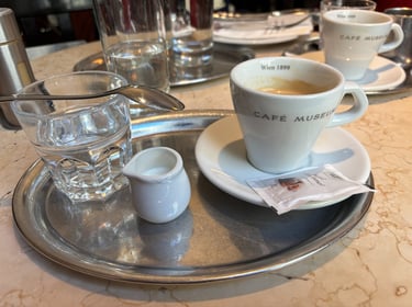 Vienna Hot Chocolate and Vienna Chocolate CoffeeFrom the Cafe Museum a large Brauner with milk and water.