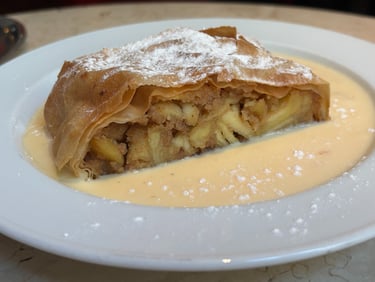 Apfelstrudel: The iconic Viennese apple strudel served with vanilla cream.