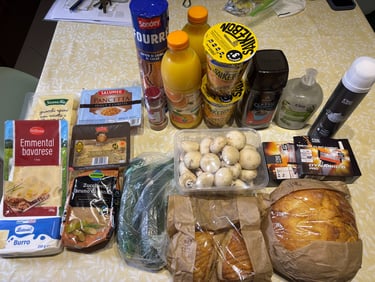 We frequently stay in each location for three to four weeks which means that grocery shopping is needed multiple times in that location. Our first few shopping trips are larger simply because we must start from scratch in each move by purchasing things we don't transport in our suitcases (toilet paper, coffee, butter, oil, sugar, etc.). Though we are living smaller than our USA life, sometimes we need to buy items for the apartment itself (a cutting board, knife, or cheese grater) just to make it through the daily comforts.