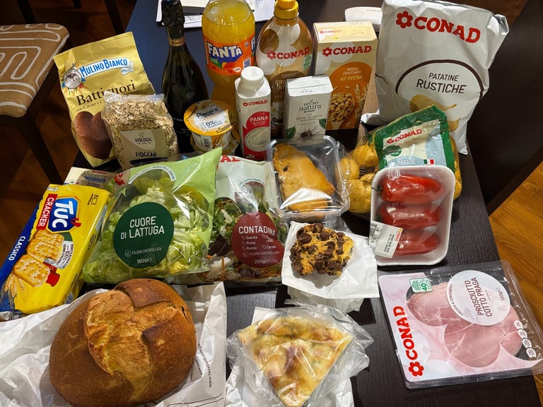 Slow travel allows us to live like a local temporarily which includes grocery shopping. Pictures and cost analysis reveal similarities and differences between Italy shopping and American shopping for groceries.