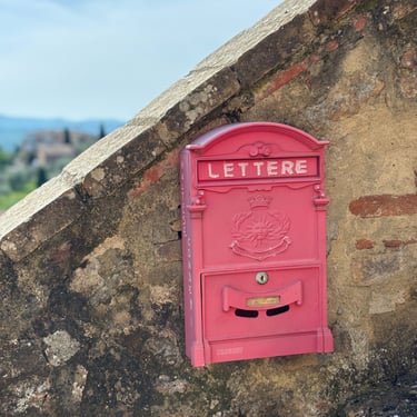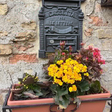 One by one the cards and letters began disappearing from the bag as they found their destination. Through a very tiny slit, the letter could see the amazing places that the other letters went. A terre cotta Posta, a marble mailbox, a historical marker mailbox, the red mailbox overlooking Val d'Orcia, and a box with pretty flowers. Though the letter wondered what it would be like to visit those destinations, important business was the focus.