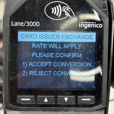 In Portugal, the tap & pay had a secondary prompt which we did not see in any other country. It asked if we wanted to accept the conversion. Believe it or not, this was a secondary way to ask if we wanted the store to do the conversion, just like the description above. The few times we chose “accept the conversion” we paid the €1,2273741. Once we realized the sneaky method, we “rejected conversion” and the transaction was processed in the local currency. Therefore, ALWAYS look at your receipt and make corrections to your behavior as you travel.
