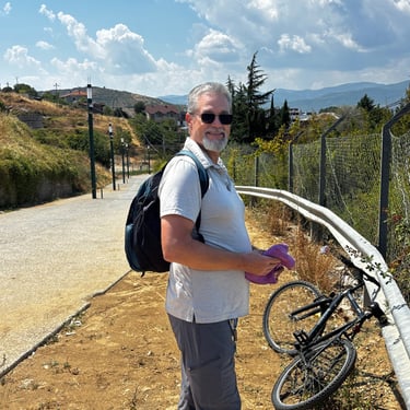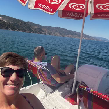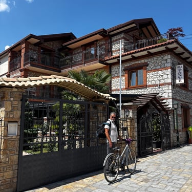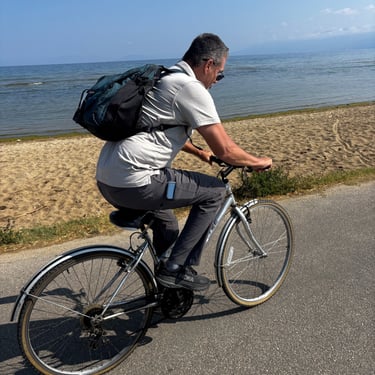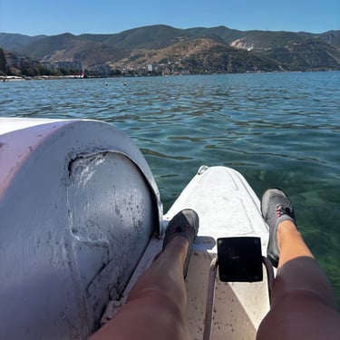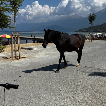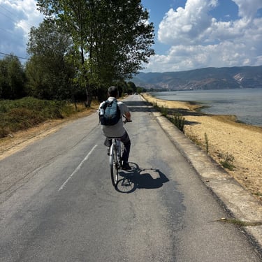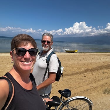 Fun in the sun. During our month, we rented bikes for a day and rode to the neighboring towns. Cost of the bike rental 100 leke each ($2.45). We also rented paddle boats.