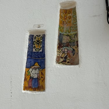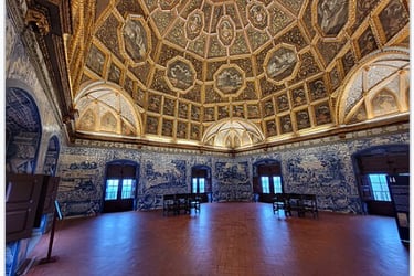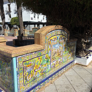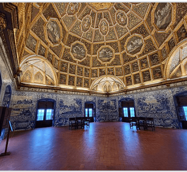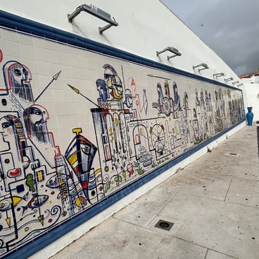 Museums we visited in Italy, Albania, Portugal, and France showed us that pottery use is thousands of years old. Clay and terre cotta jugs and dishes were made for survival, jewelry was made for fashion, and decorations were made for homes. The use of tiles originated in Egypt and Arab then invasions circulated the use of tiles into the Mediterranean and Portugal during the 13th century. In the 15th century during King D. Manuel I's reign, he became obsessed with the artistic side of tile seen in Spain and adorned the walls of the National Palace of Sintra with them.