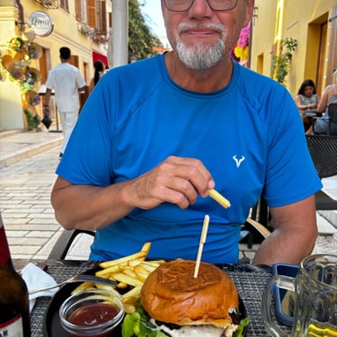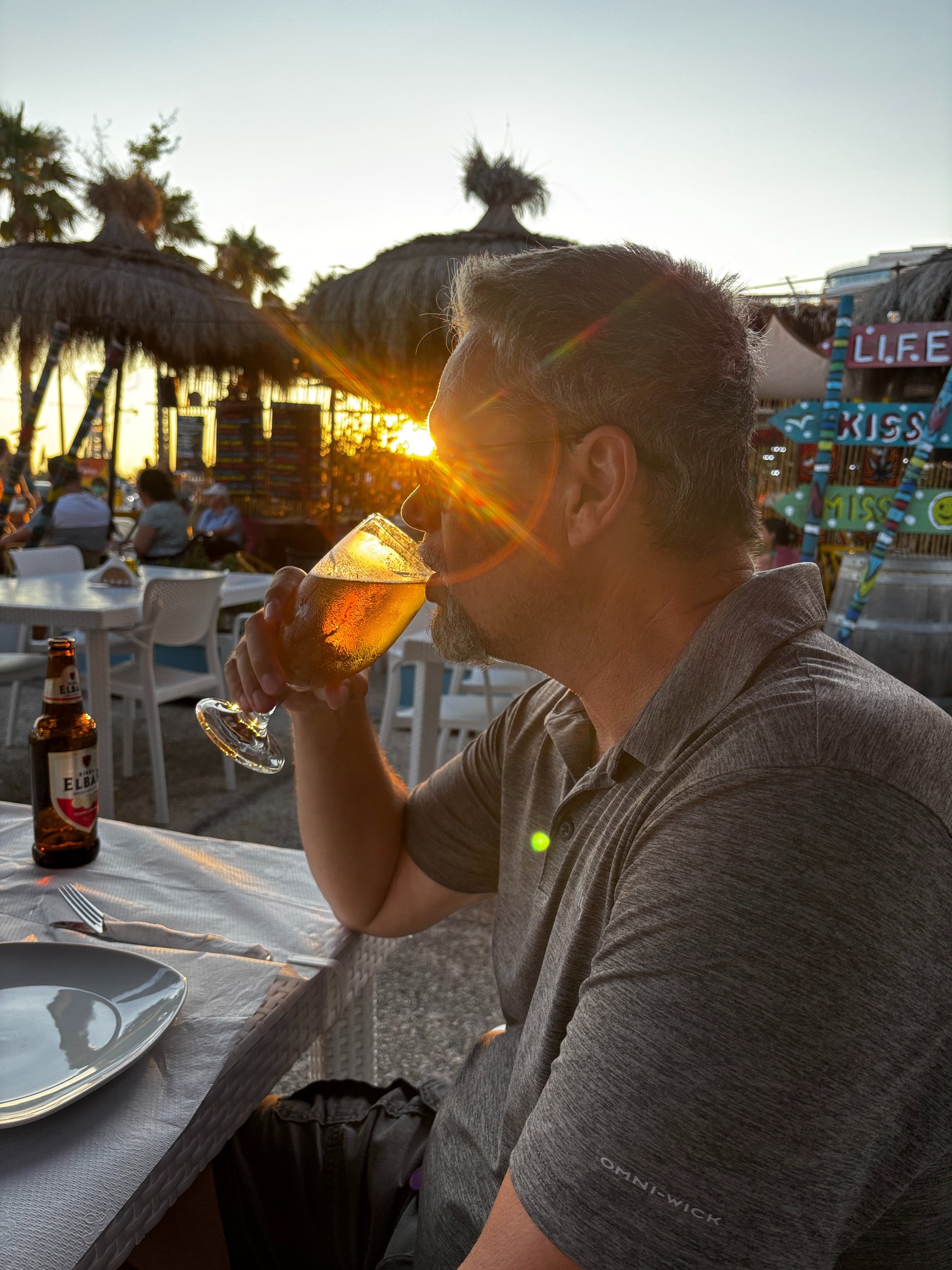 Retirement got real here as we slipped into the beach vibe where the Adriatic Sea meets the Ionian Sea. Greg even captured a sequence of my Raki tasting. Raki is a popular Albanian drink.